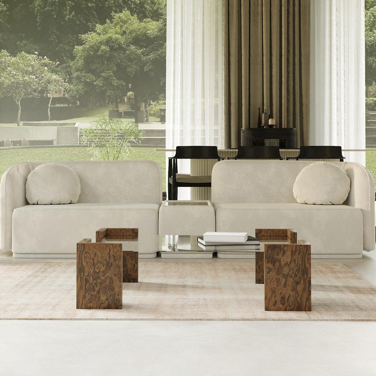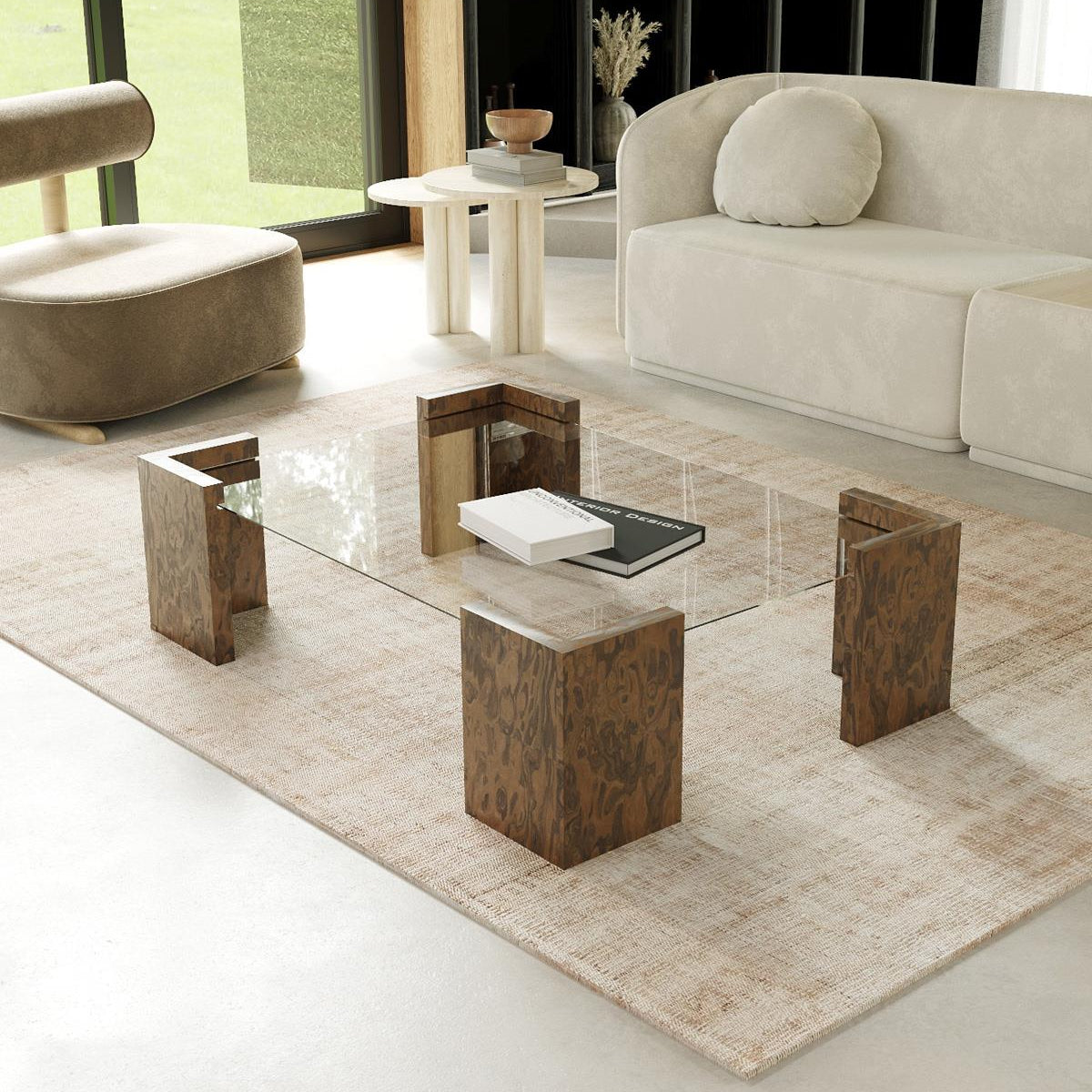 Frame Ahşap Orta Sehpa ahşap ayakları üzerine konumlandırılmış cam tablası ile şıklığı ve dayanıklılığı bir araya getiriyor.