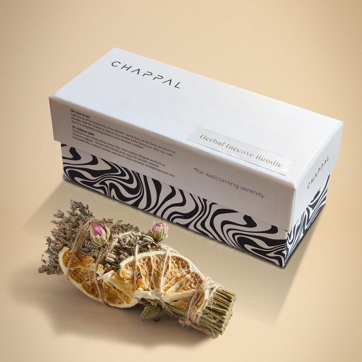 Dişil Enerji Tütsü Demeti, Lavanta, Gül ve Portakal Kabuğu gibi özenle seçilmiş bitkilerin harmonik bir kombinasyonunu sunar.