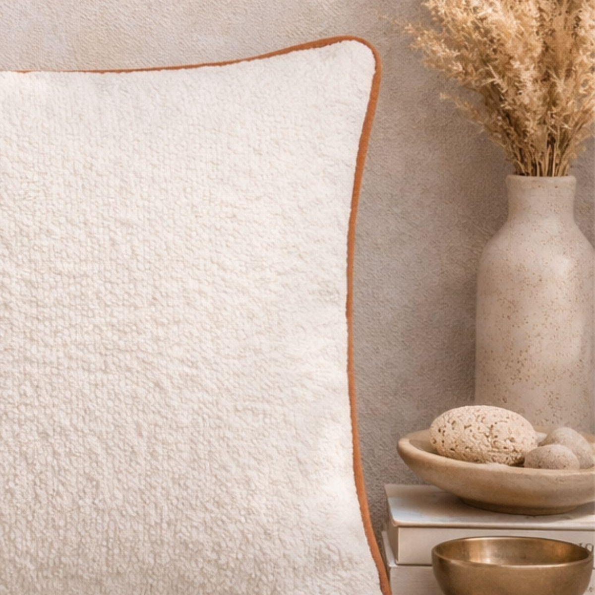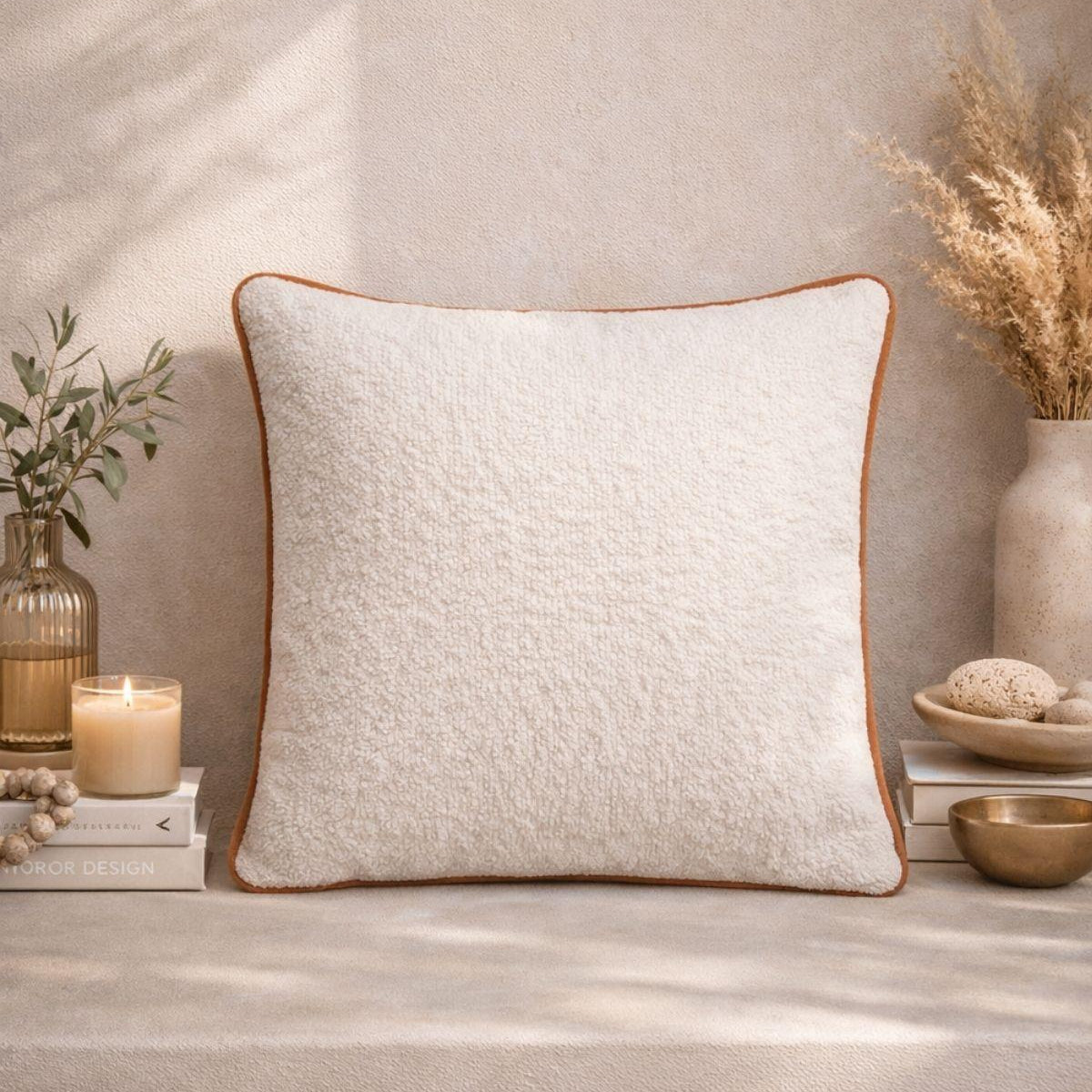 Its soft fabric is enriched with light orange piping. This throw pillow has been carefully designed to add warmth and elegance to your home