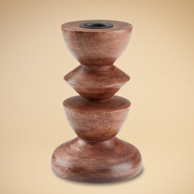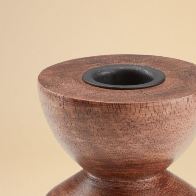 This brown candlestick, made with the durability and elegance of mango wood, has a unique appearance with its hand-carved details.