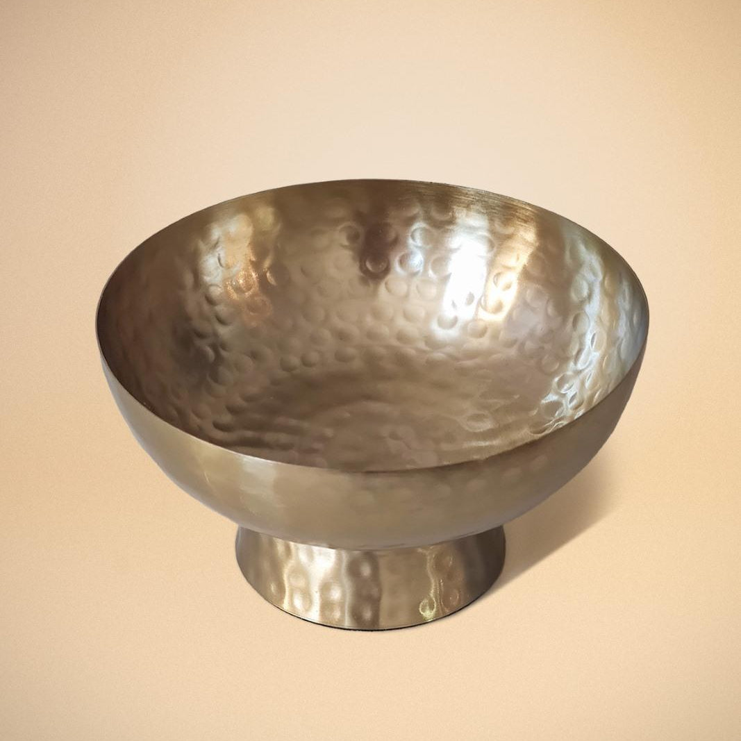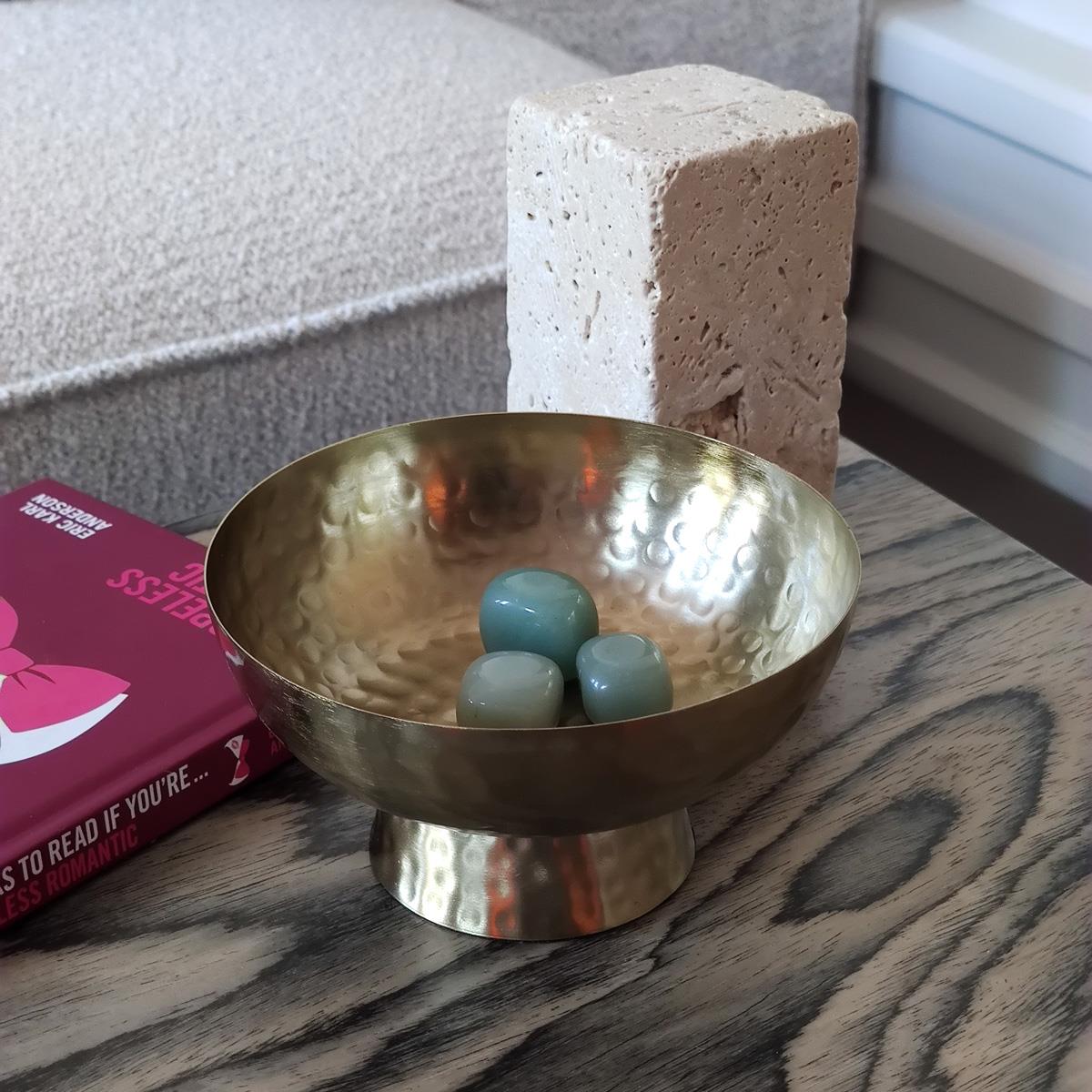 Aurum Dekoratif Kase, mat pirinç rengi kaplaması ve çekiçle dövülmüş dokusuyla ortama sıcak ve zarif bir dokunuş katar.