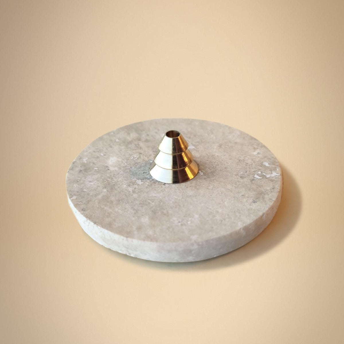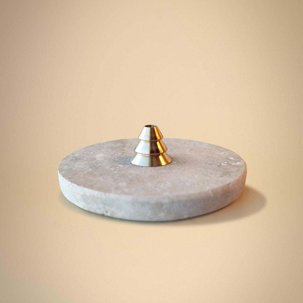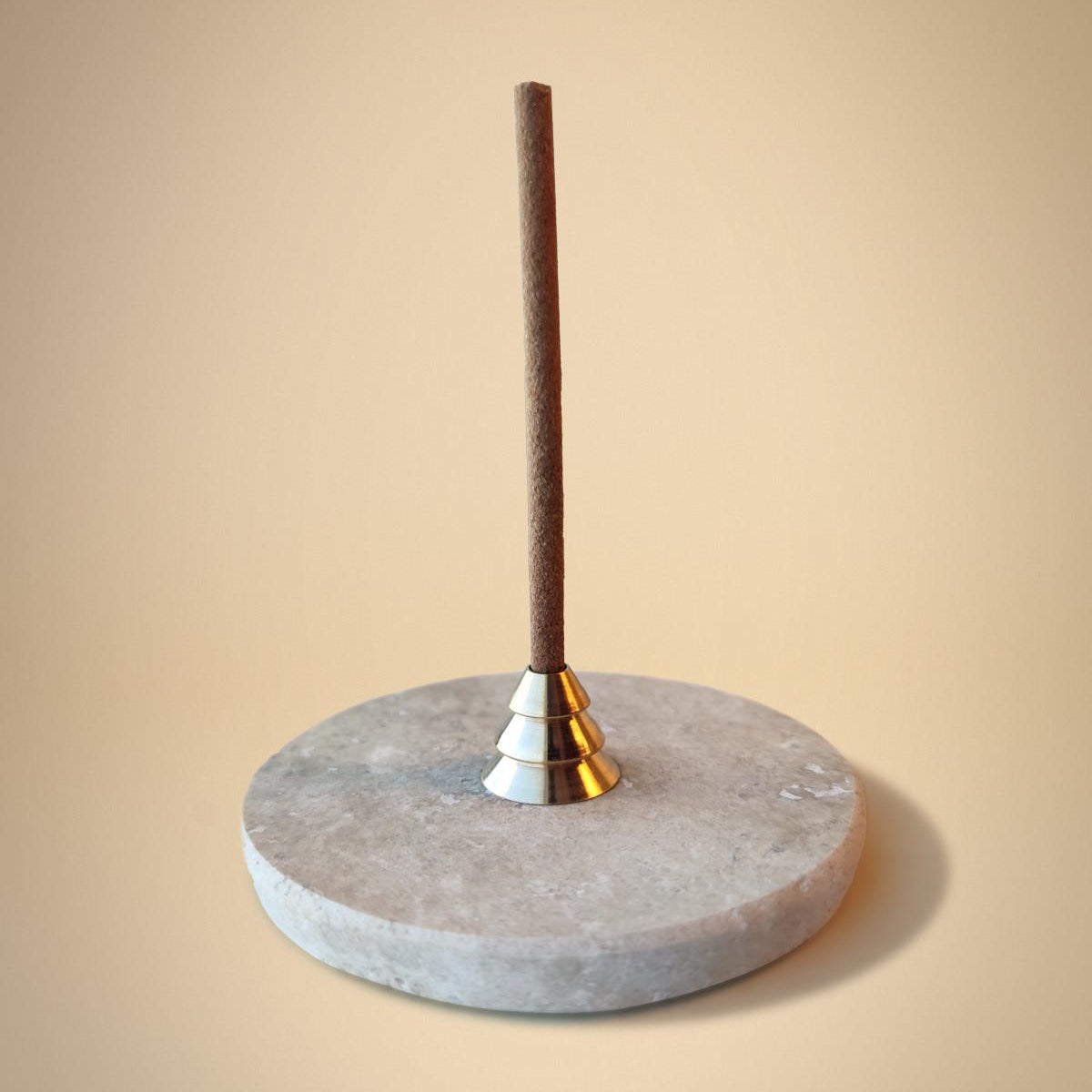 Elegant and functional Travertine New Year's Stick Incense Burner, carefully designed from travertine and brass material.