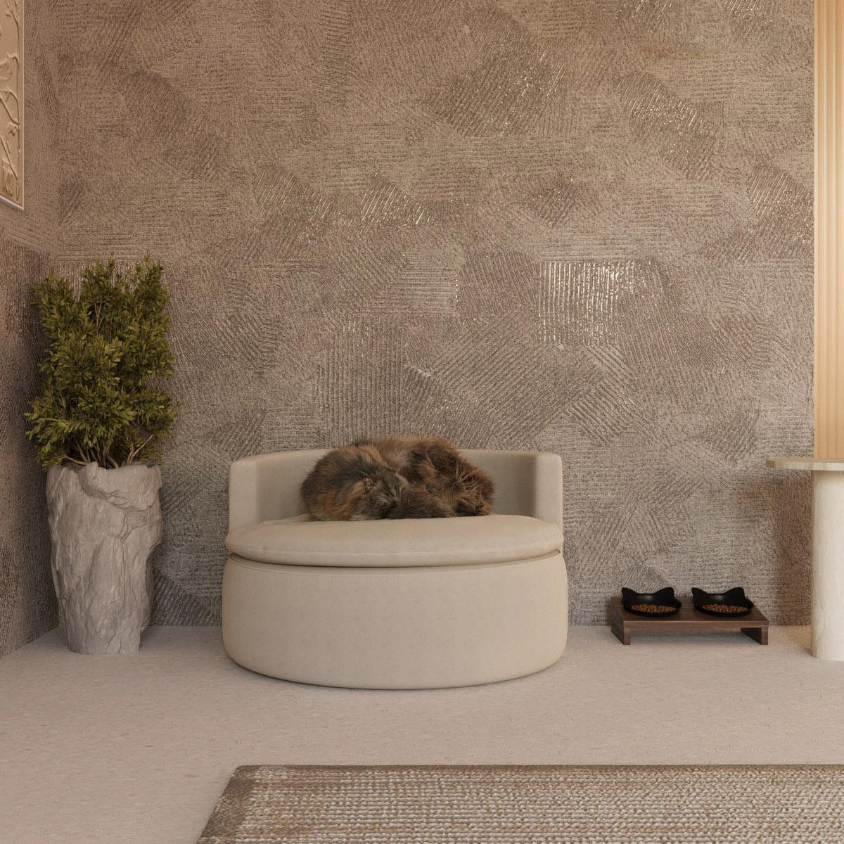 Berjerde kullanılan kumaş malzemesi, dayanıklı ve uzun ömürlü kullanım için özenle seçilmiştir. Ayrıca kolay temizlenebilme özelliği sayesinde pratik bir kullanım sağlar ve berjerin her zaman temiz görünmesini sağlar. Şık ve konforlu tasarım mobilya keyfini artık patili dostlarımız da yaşayacak