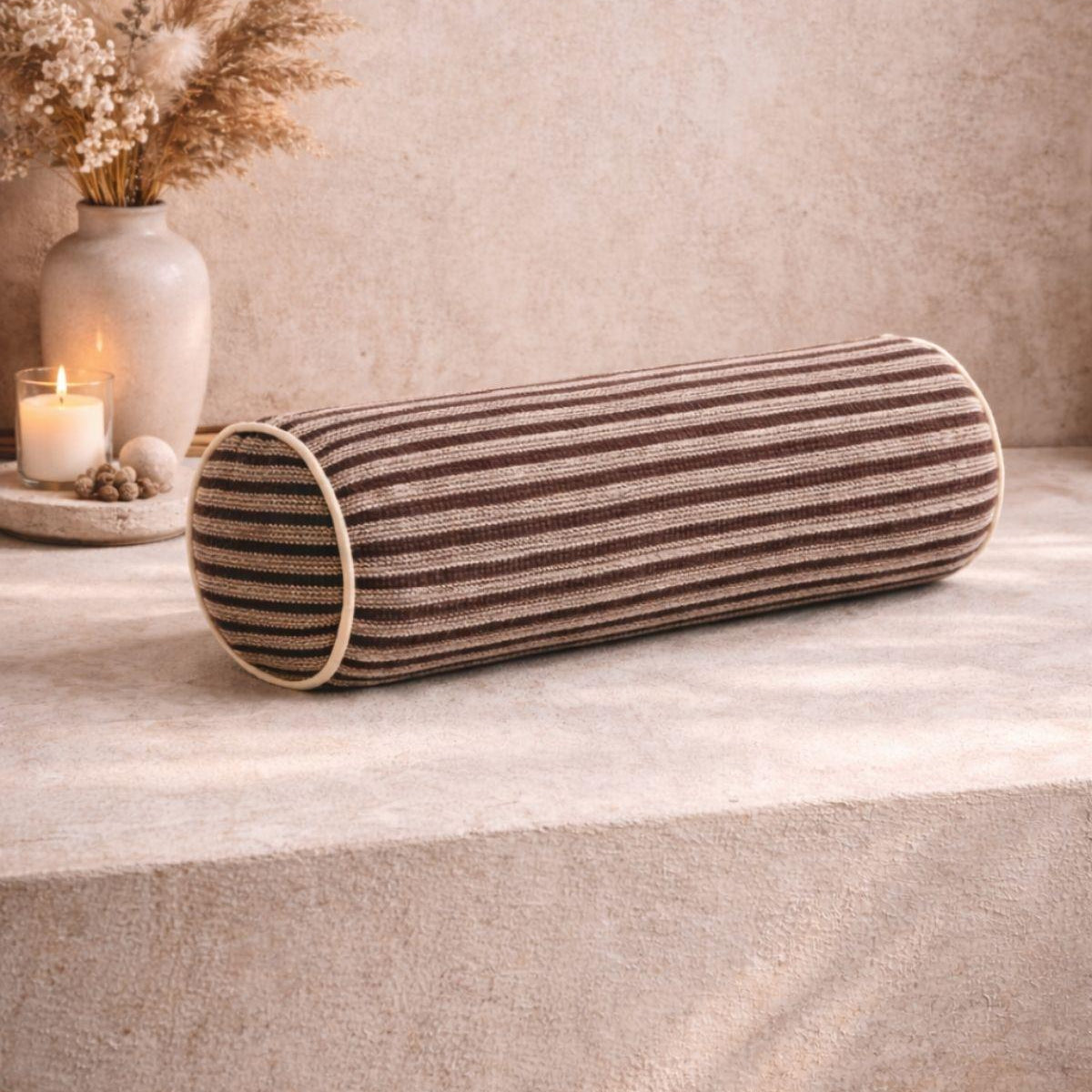 Kalamata Desenli Silindir Kırlent - Kahverengi ön sipariş verildi ve stoklara tekrar girdiğinde kargoya verilecek.