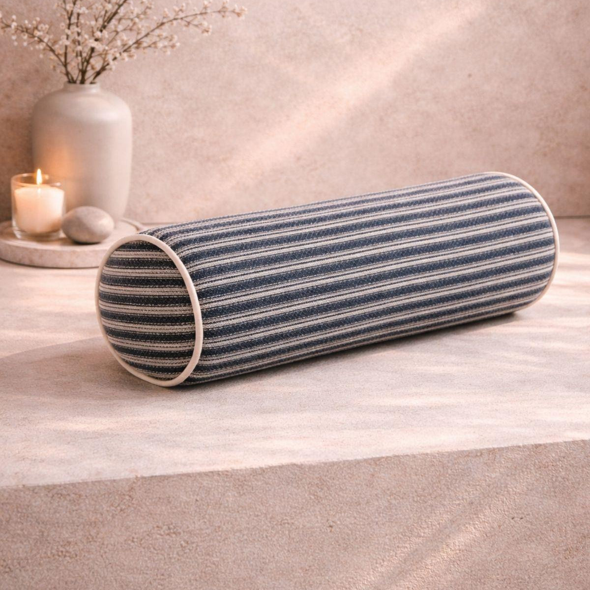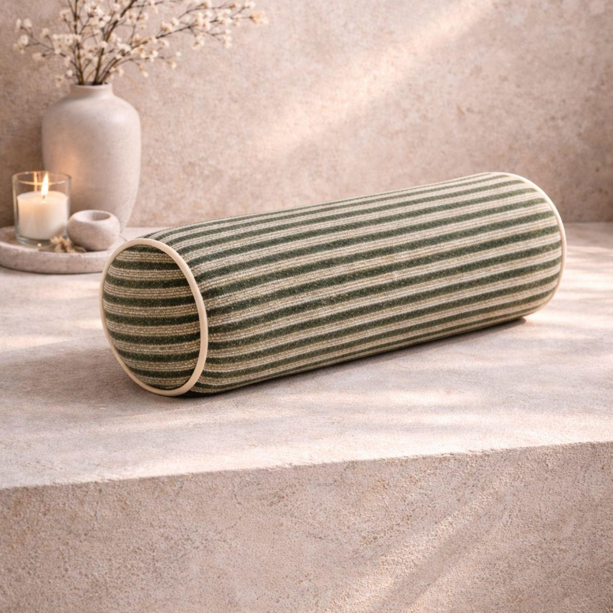 Silindir şekli, modern iç mekanlar ve spa-benzeri ortamlar için ideal bir aksan oluşturur. Yumuşak, yüksek kaliteli kumaş ve hassas desen detayları, oturma alanlarına sofistike bir dokunuş katır. Ergonomik yapısı, rahat destekleme sağlarken estetik değer de sunmaktadır. Lüks ev dekorasyonu ve wellness mekanları için mükemmel bir seçim