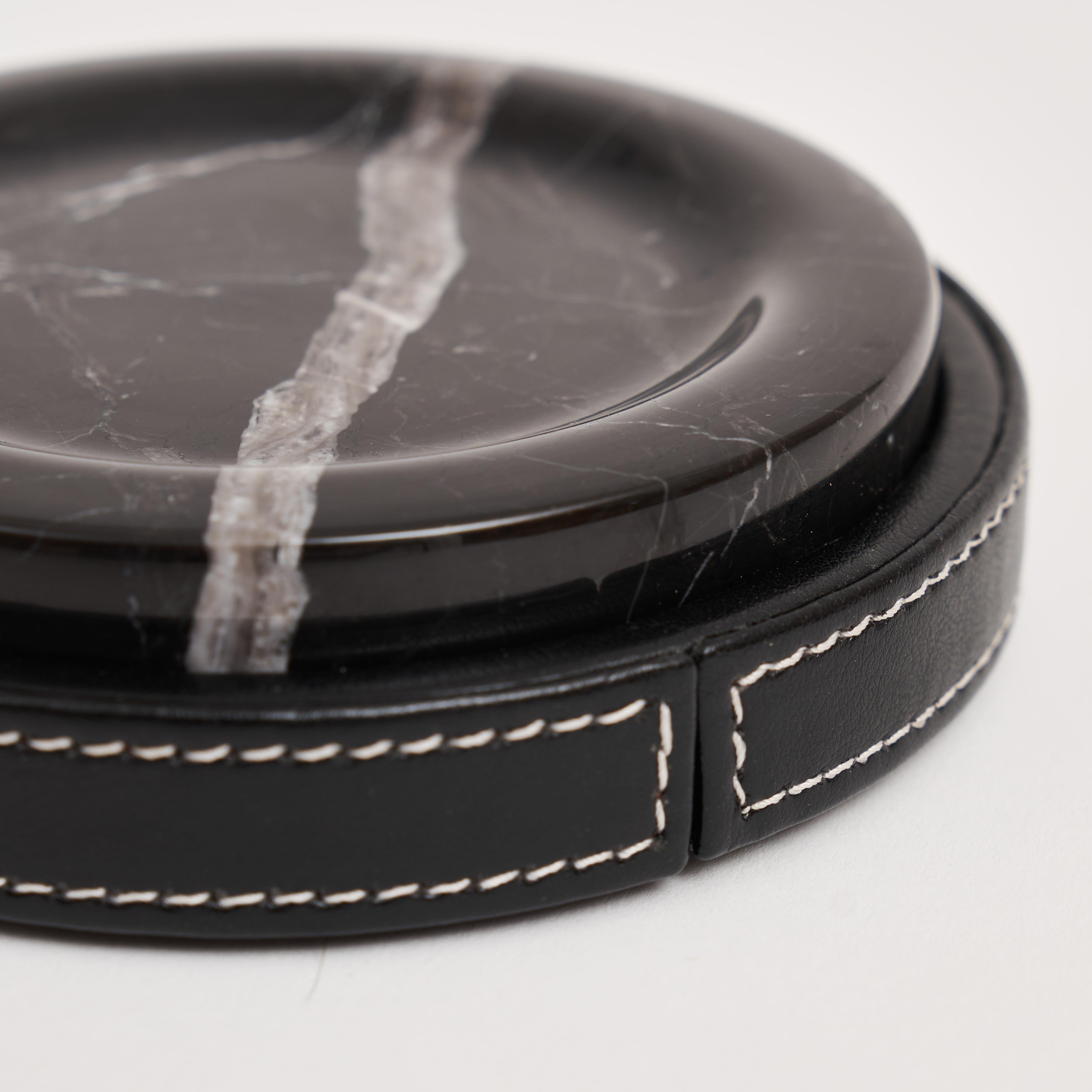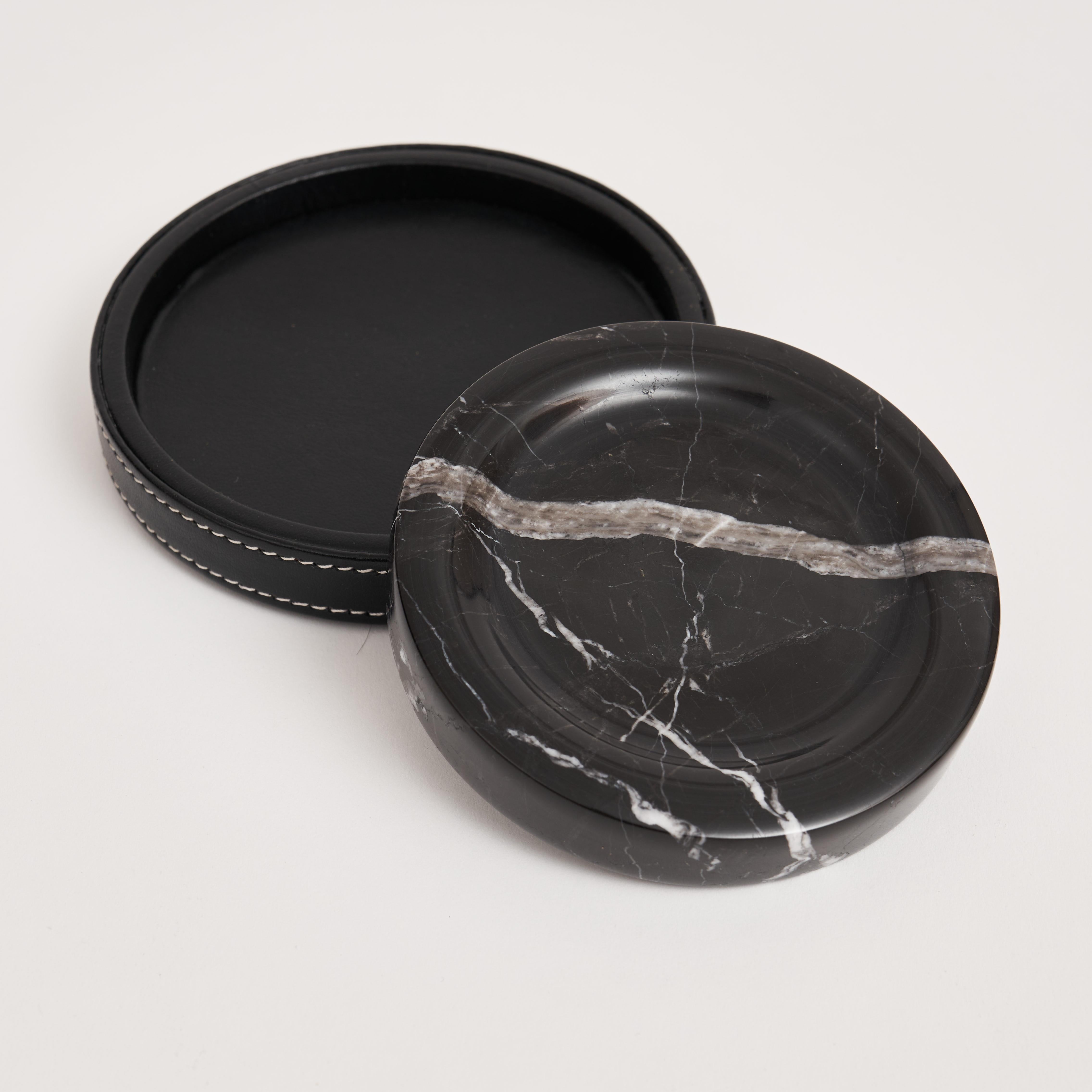 Zarafeti ve fonksiyonelliği bir araya getiren Marlera Toro Bardak Altlığı; doğal Toros mermerin sade şıklığını el işçiliği deri detaylarla buluşturur.
