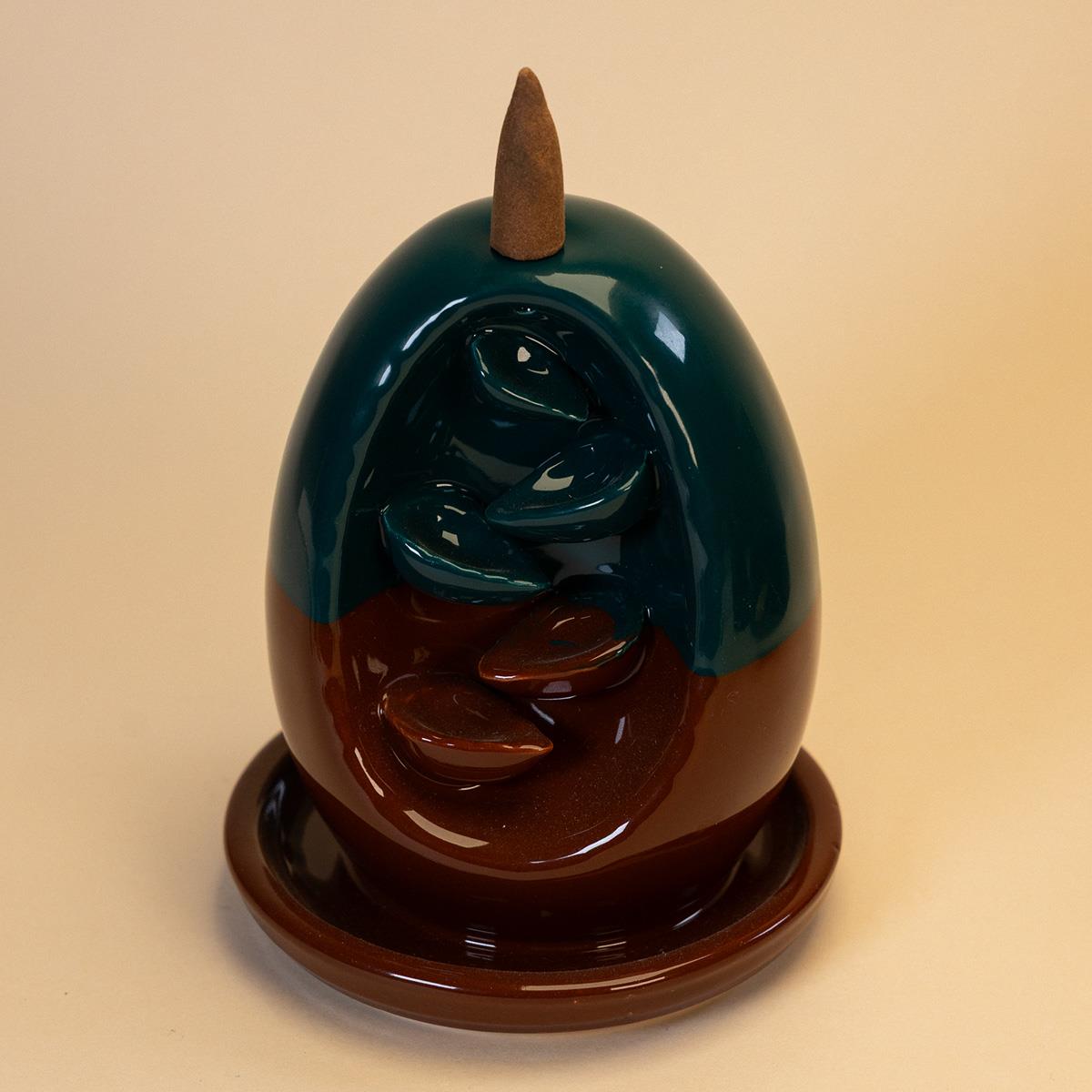 Seramik Geri Akış Tütsülük Kahverengi Petrol Yeşili, zarif bir tasarıma sahip olan ve seramik malzemeden üretilmiş bir üründür.