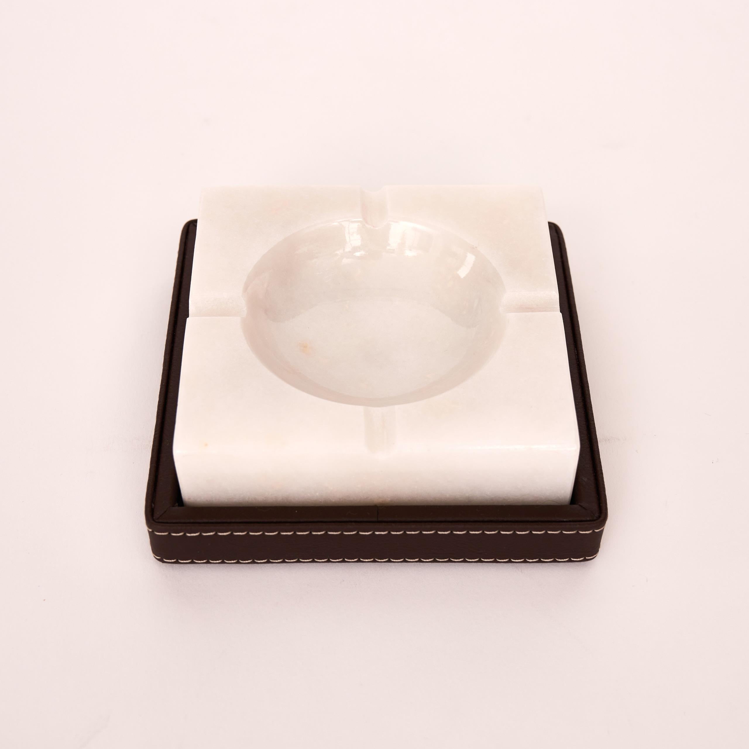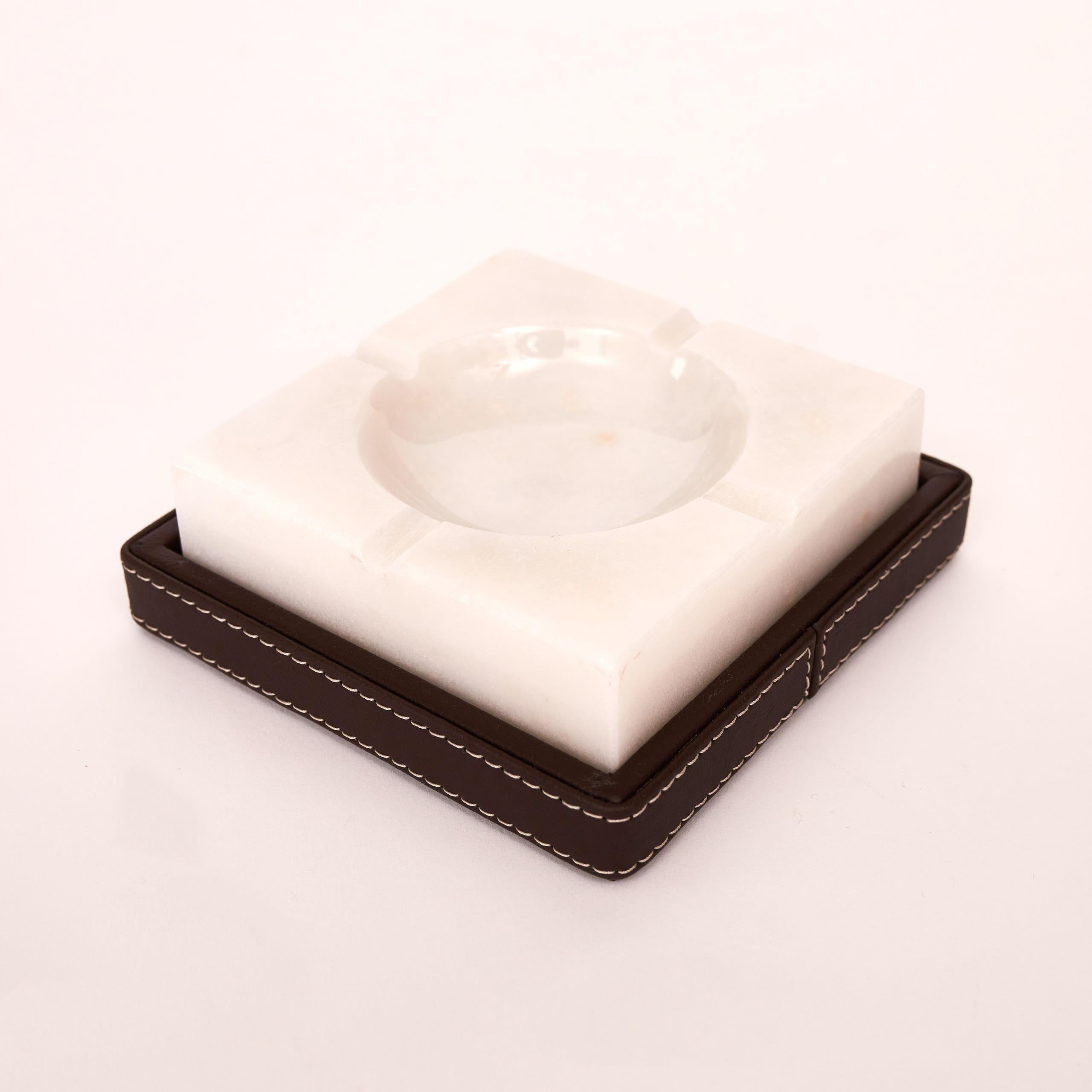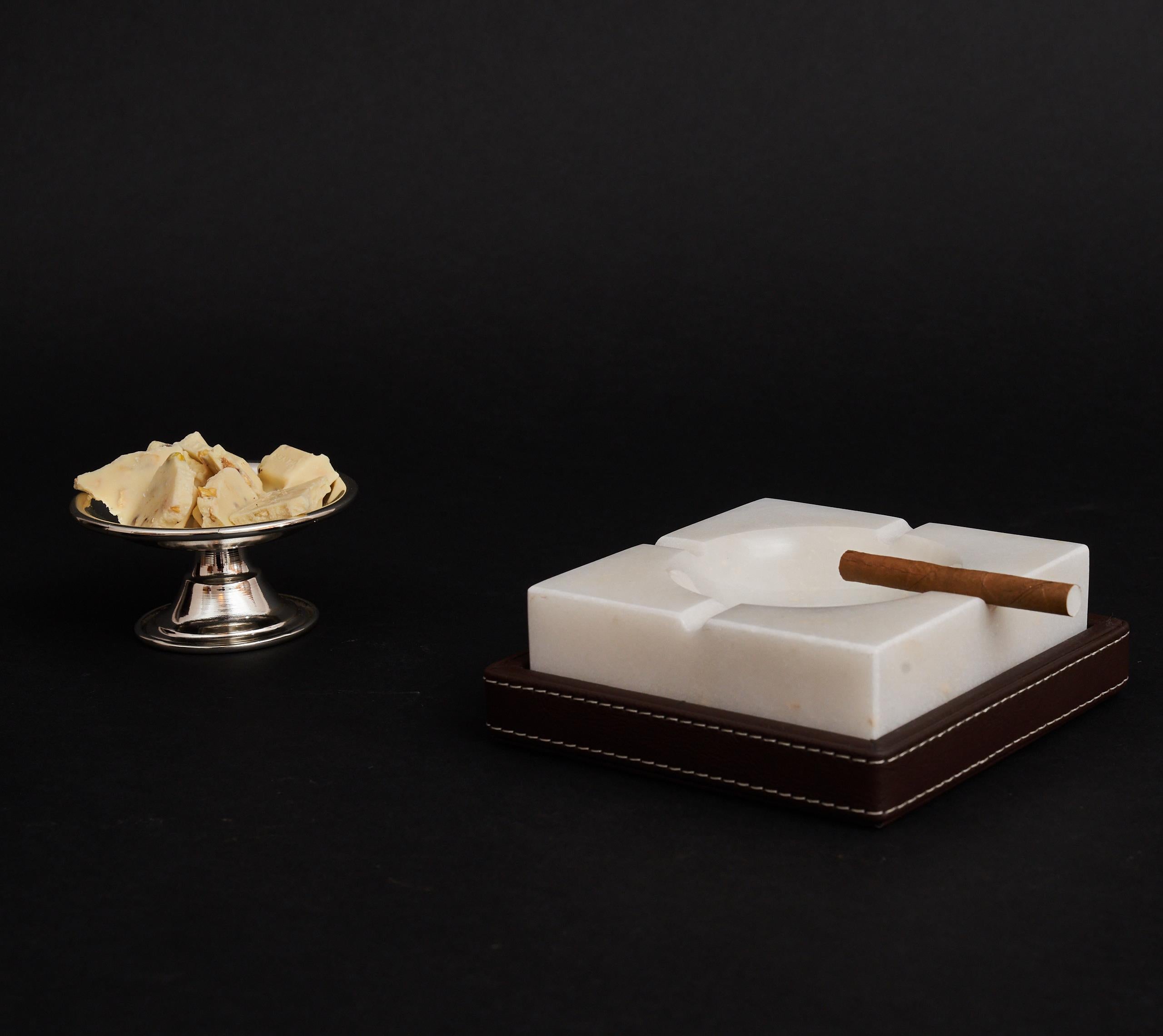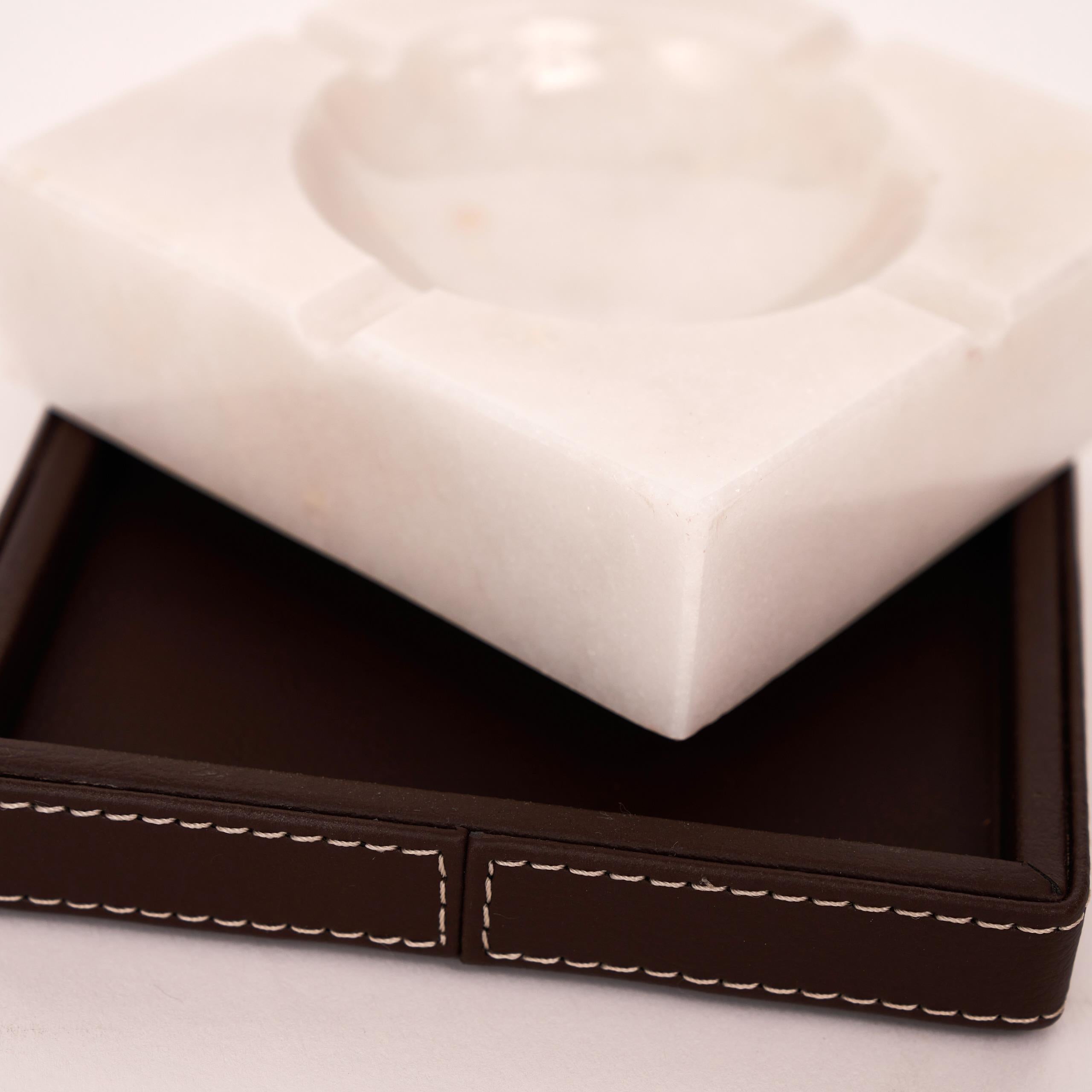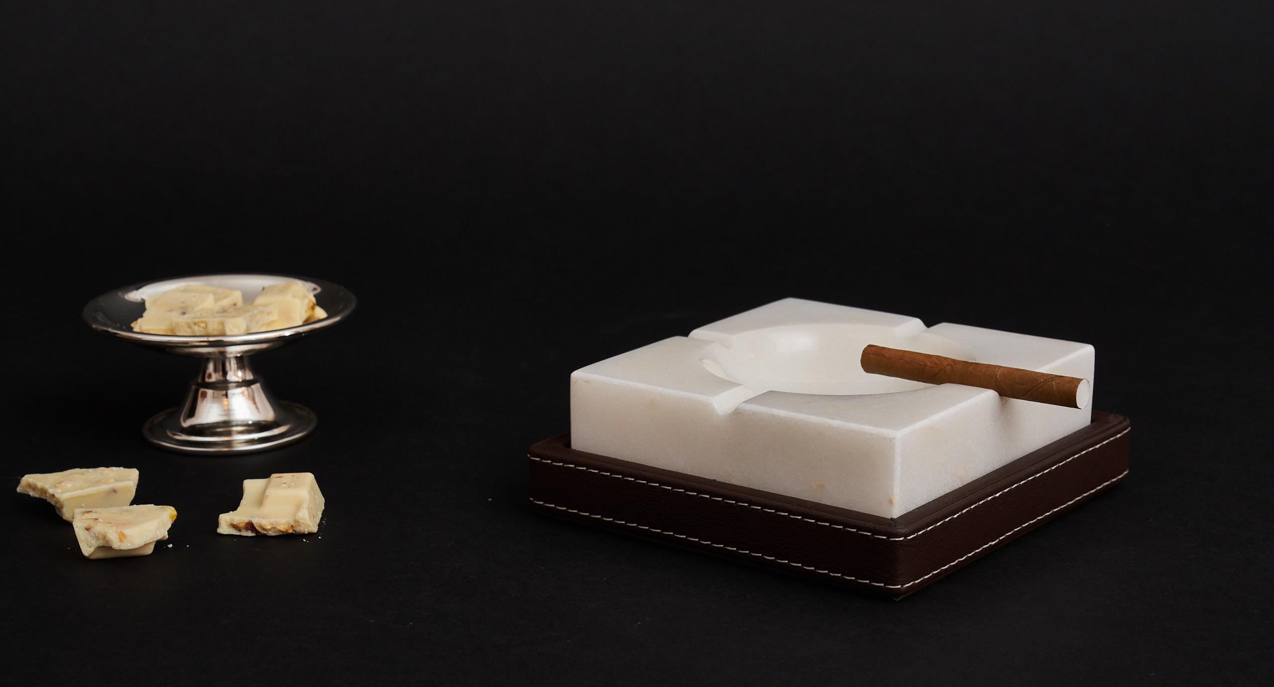 Zarif tasarımıyla öne çıkan Sierra Beyaz Sigara Küllüğü, Beyaz mermerinin doğal şıklığını el işçiliği Kahverengi deri kaplama ile bir araya getirir.