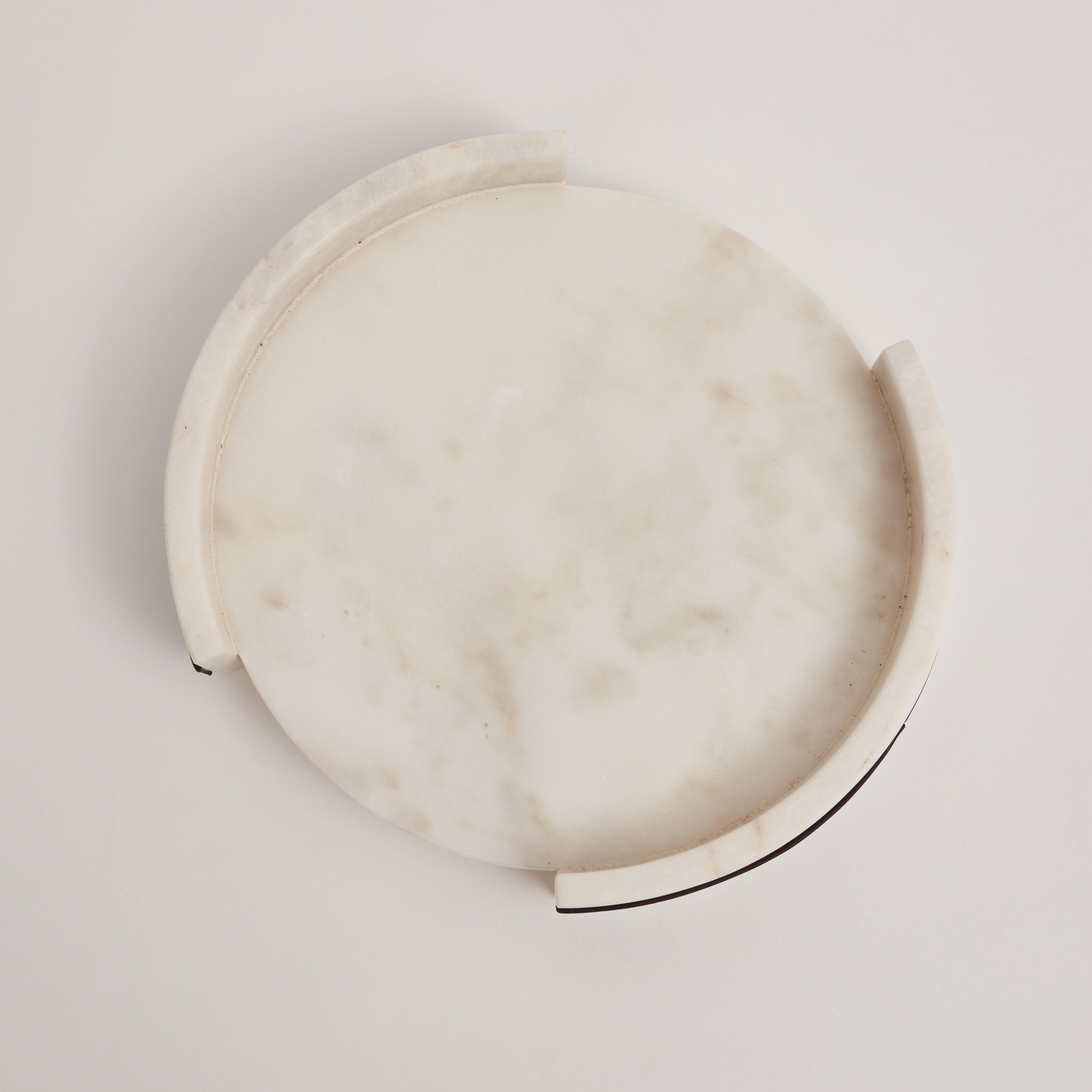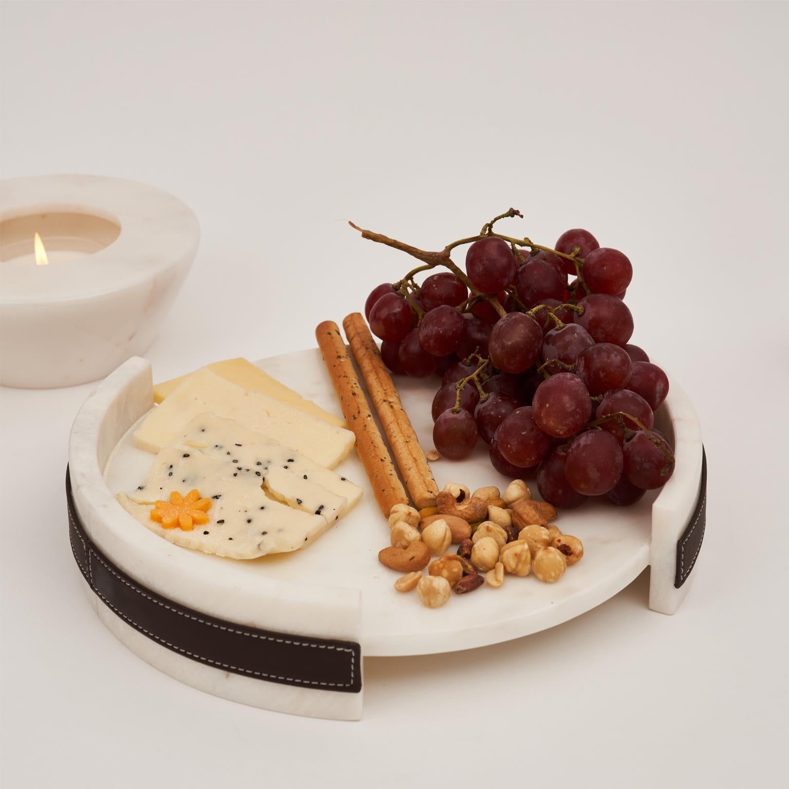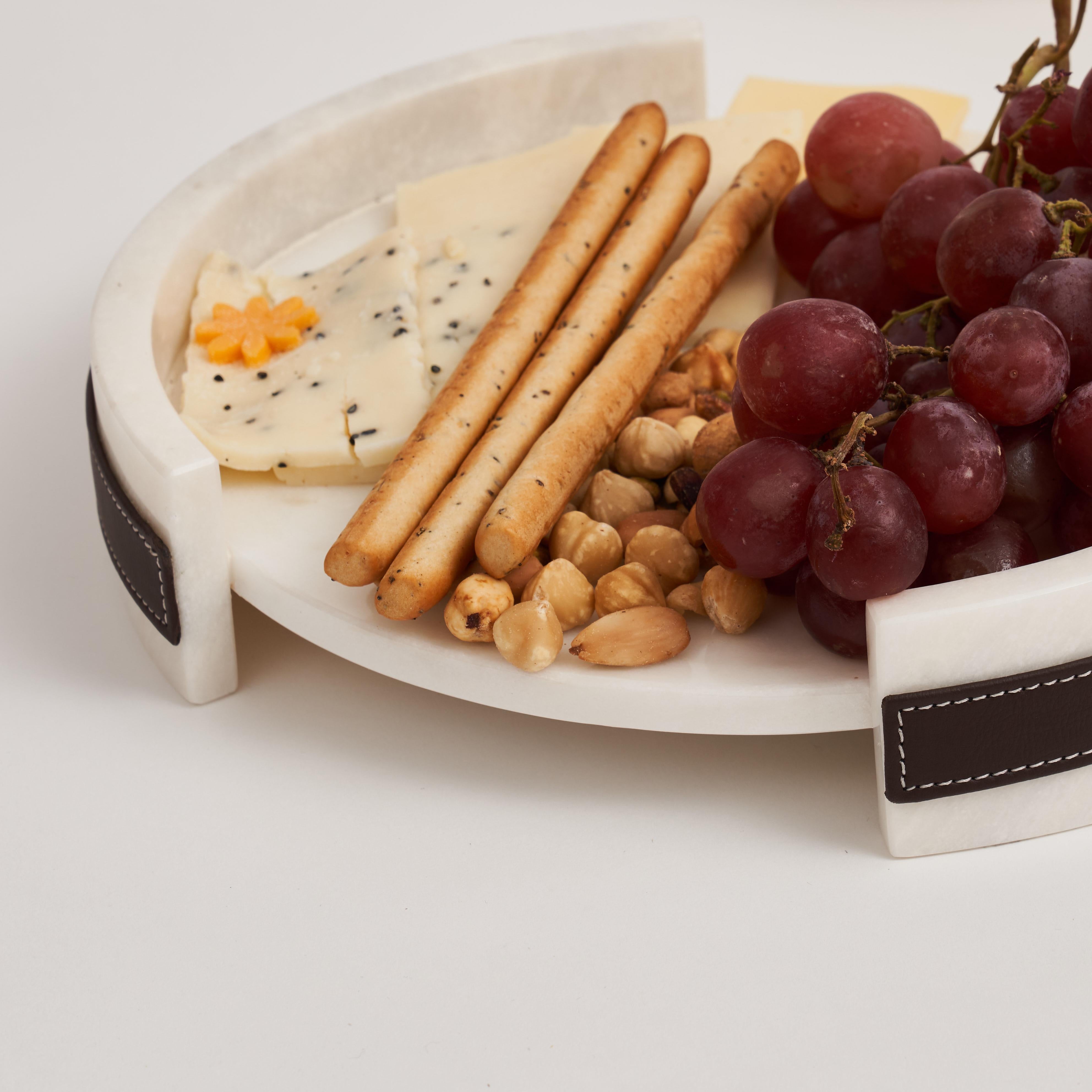 Doğal beyaz mermerin zamansız şıklığı, el işçiliği yüksek kaliteli vegan deri detaylarla Solid Nappa'da buluşuyor .