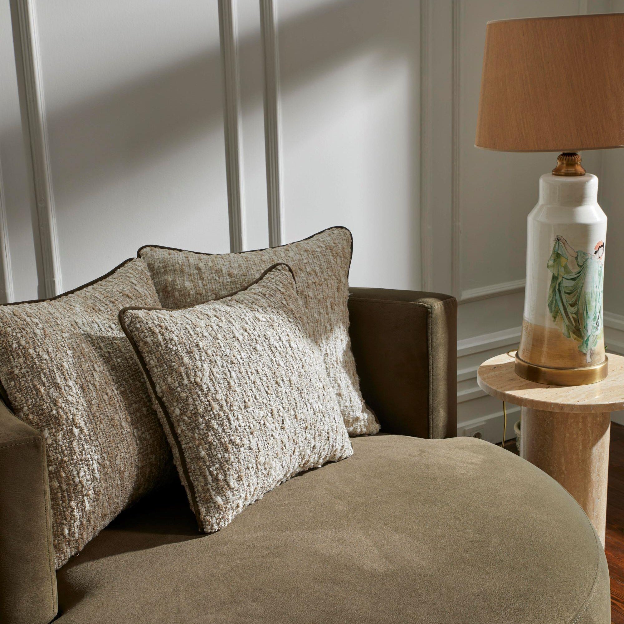 Berjerde kullanılan kumaş malzemesi, dayanıklı ve uzun ömürlü kullanım için özenle seçilmiştir. Ayrıca kolay temizlenebilme özelliği sayesinde pratik bir kullanım sağlar ve berjerin her zaman temiz görünmesini sağlar. 3 Adet kendi kumaşında kırlent gönderilmektedir. Görselde bulunan kırlentler dekor amaçlı kullanılmıştır