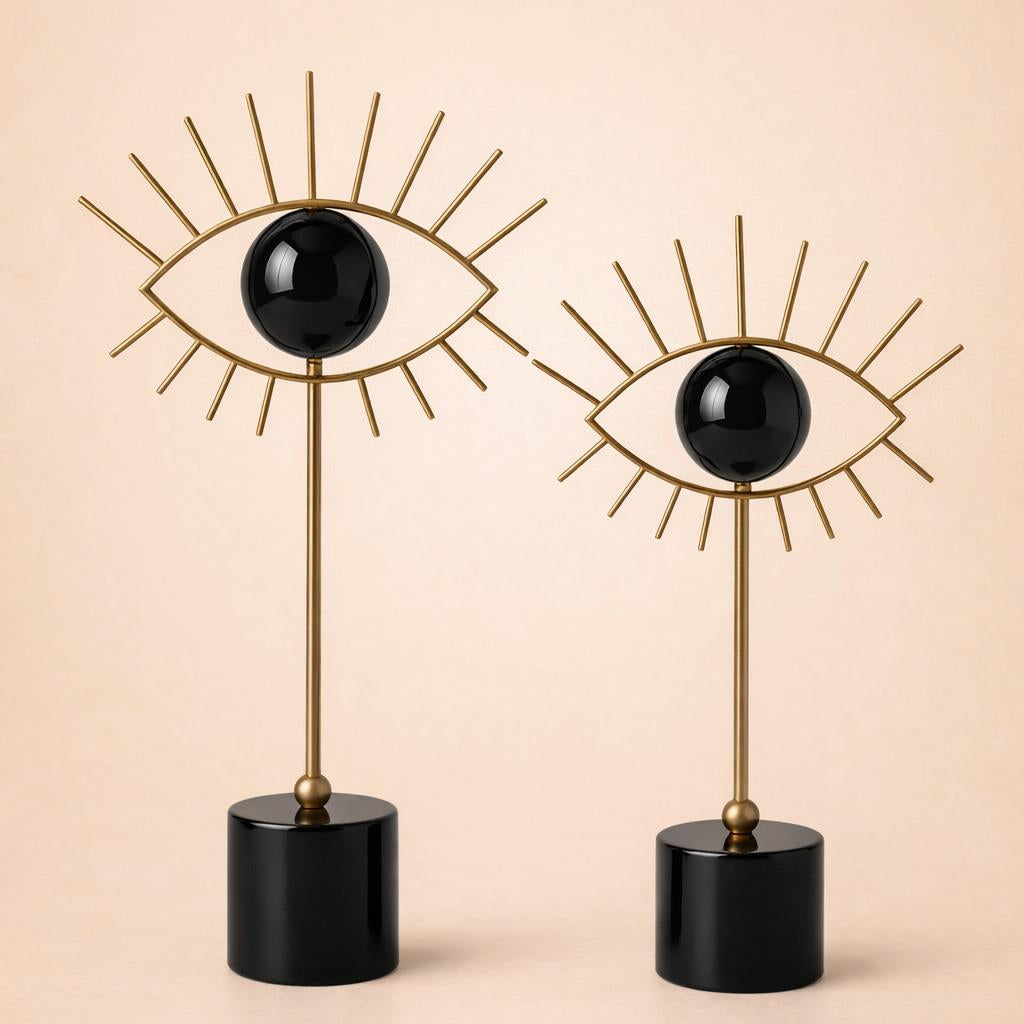Pirinç malzemeden üretilmiş olan bu dekoratif objeler, siyahın asil duruşu ve zarif mermer kaideleriyle dikkat çeker. Hem estetik hem de anlamlı bir dekorasyon parçası olan Evil Eye objeleri, sevdiklerinize hediye edebileceğiniz özel ve zarif bir alternatif sunar.