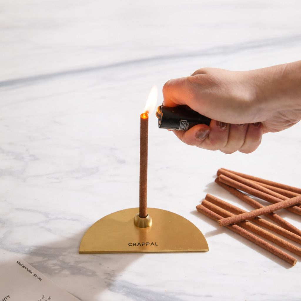 Tütsülüğünüzü düz ve dayanıklı bir yüzeye yerleştirin. Ardından, tütsünüzü içine yerleştirin. Tütsüyü yakmak için ucunu ateşe tutun ve ardından alevi dikkatlice üfleyerek söndürün. Tütsülük, tütsünün yanmasını sürdürürken zarif bir duman oluşumuna izin verir. Son olarak tütsünün söndüğünden emin olun.