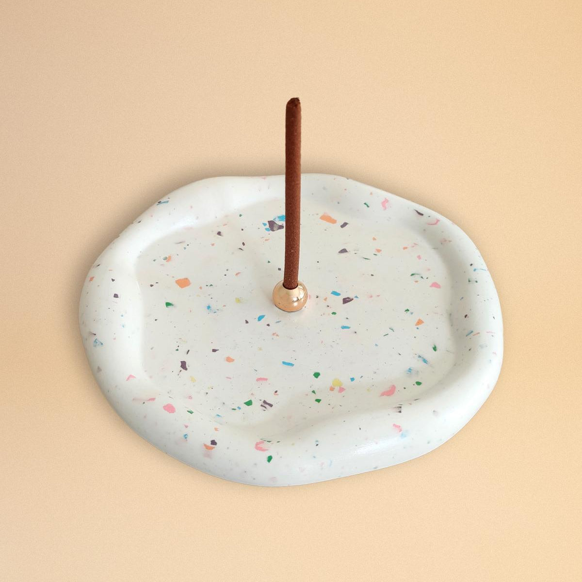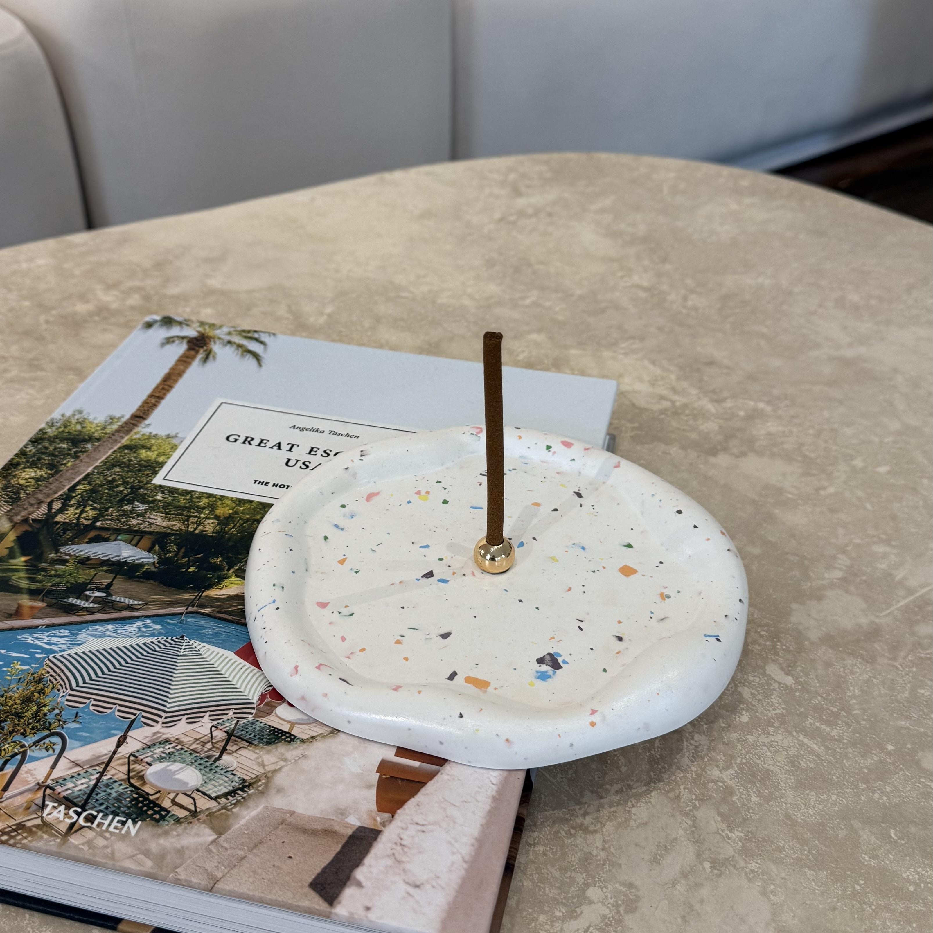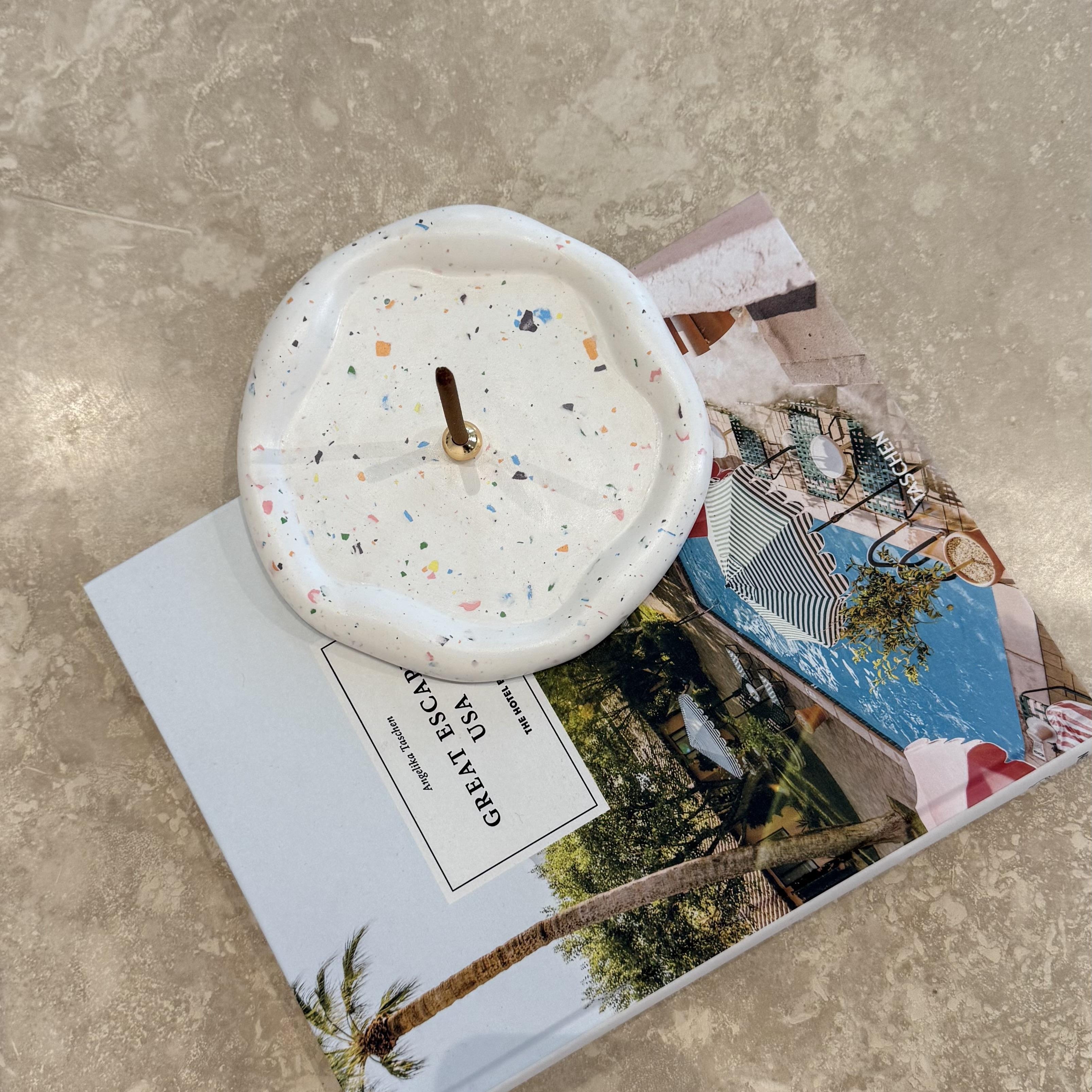Betonun dayanıklılığını terrazzo desenlerinin canlılığı ve pirincin zarafetiyle birleştiren Terrazzo Pirinç Stick Tütsülük, modern tasarımıyla yaşam alanlarınıza estetik bir dokunuş katar.