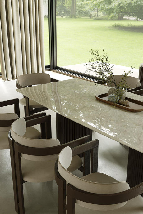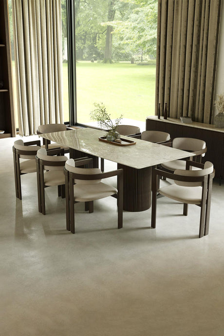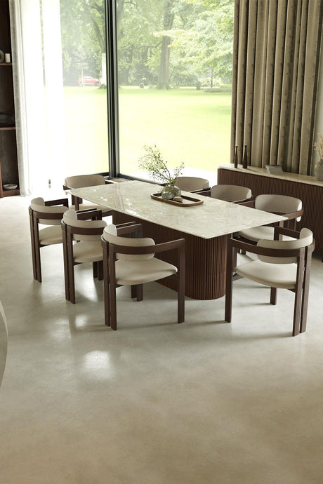 Beyaz Fitilli Mermer Yemek Masası