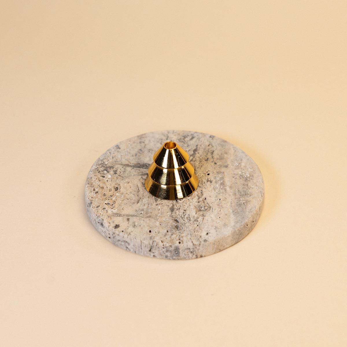 Zarif ve fonksiyonel Traverten Yılbaşı Stick Tütsülük, traverten ve pirinç malzemeden özenle tasarlandı.