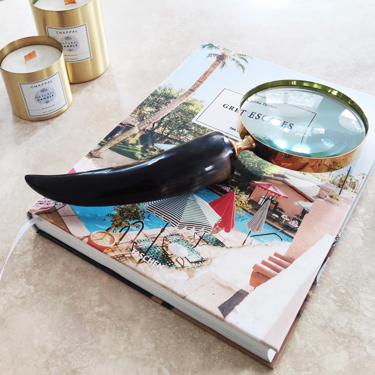 Zarif detayları ve eski dünya cazibesi ile dikkat çeken Boynuz Saplı Dekoratif Büyüteç, koleksiyon meraklıları ve vintage dekor sevenler için özenle tasarlandı.